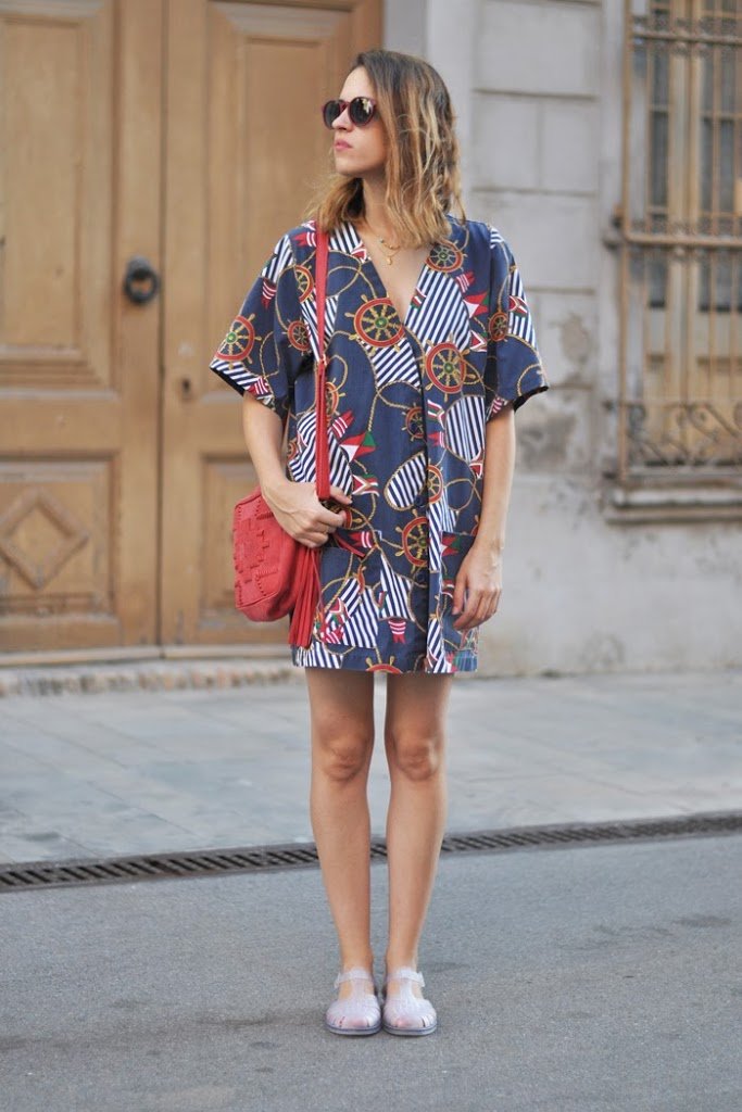 C’est cette robe de plage, j’ai acheté à une petite boutique vintage dans un quartier du Japon. La robe, j’ai combiné avec mes sandales Nuovum, un sac rouge Stradivarius et colliers de Les Colliers d’Annie.