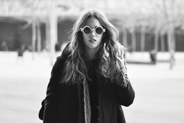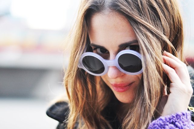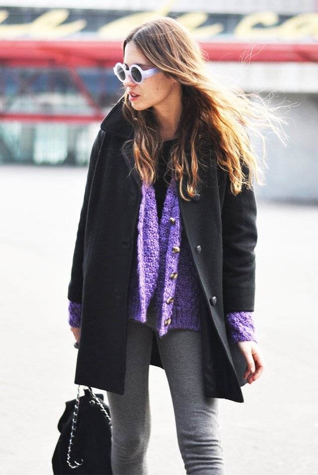 Nosotras también hemos sucumbido a las gafas redondas! Es genial le dan el toque de color al look informal junto con la chaqueta de punto!