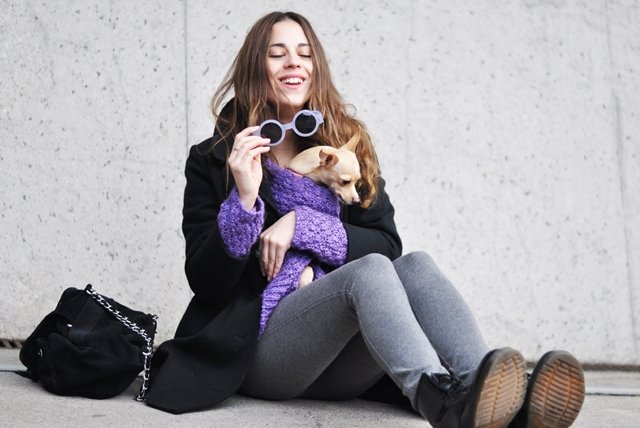 Un Look cómodo para un paseo por el Forum de Barcelona con la mejor compañía que se puede tener. Las gafas os las mostré en un post anterior de nuevas adquisiciones y estaba deseando enseñároslas con un look diario y casual. Mis Martens, unos pantalones cómodos y este cardigan violeta que da ese toque de color al look (la verdad todo un hallazgo rebajil de Zara) completan el resto del outfit.