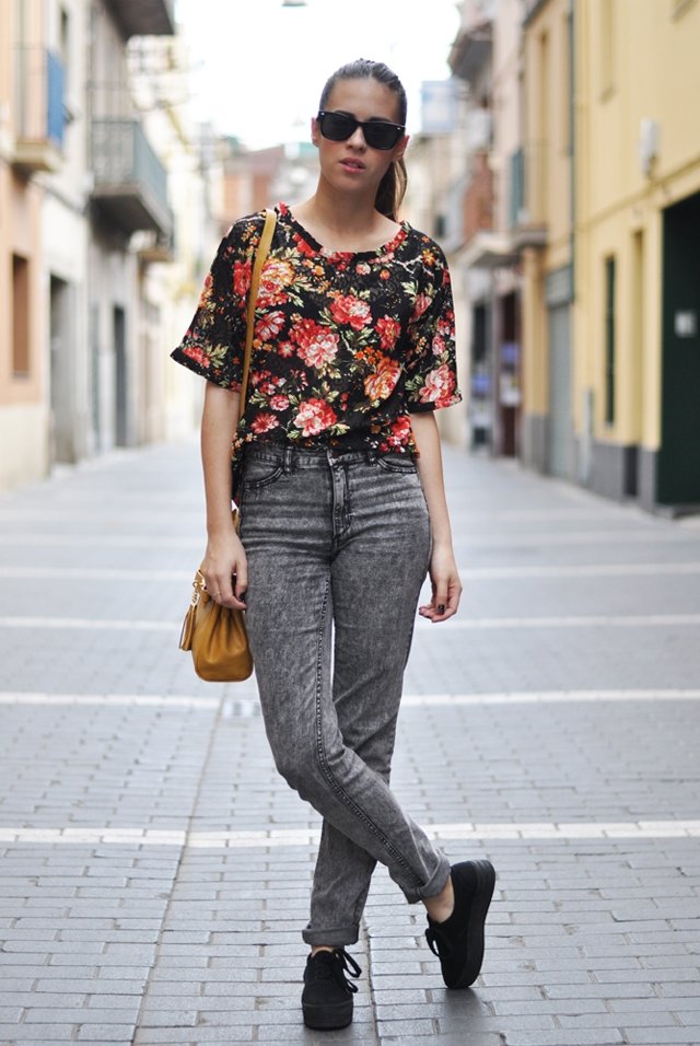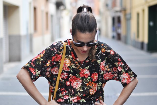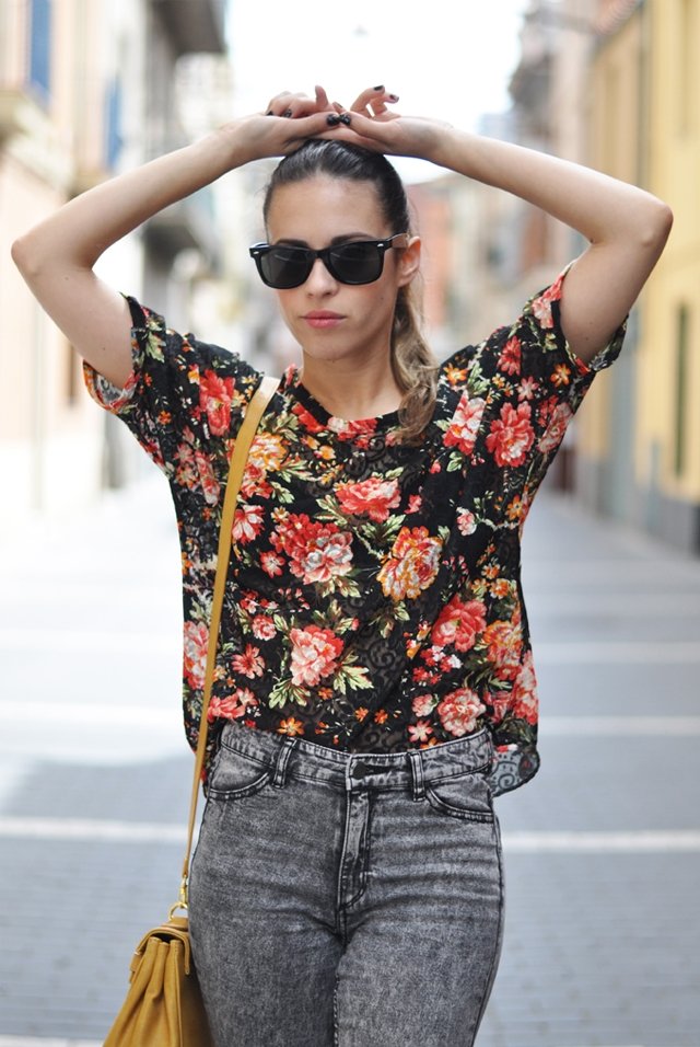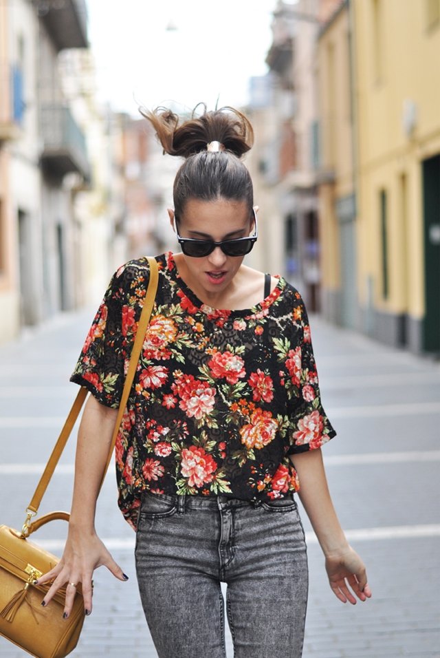 Totalmente guapisima! 🙂 me encanta la combinacion un poco rocker con el top de flores! loveit!