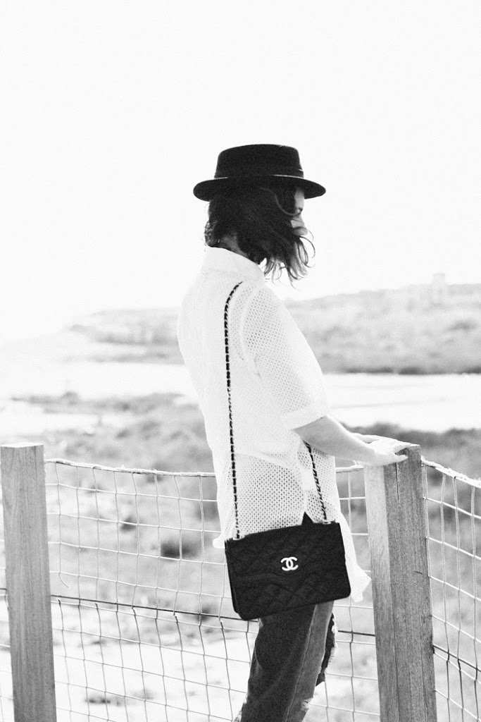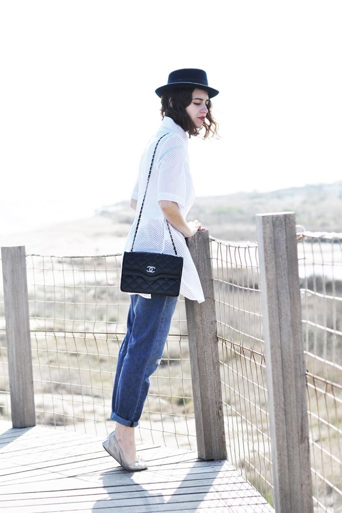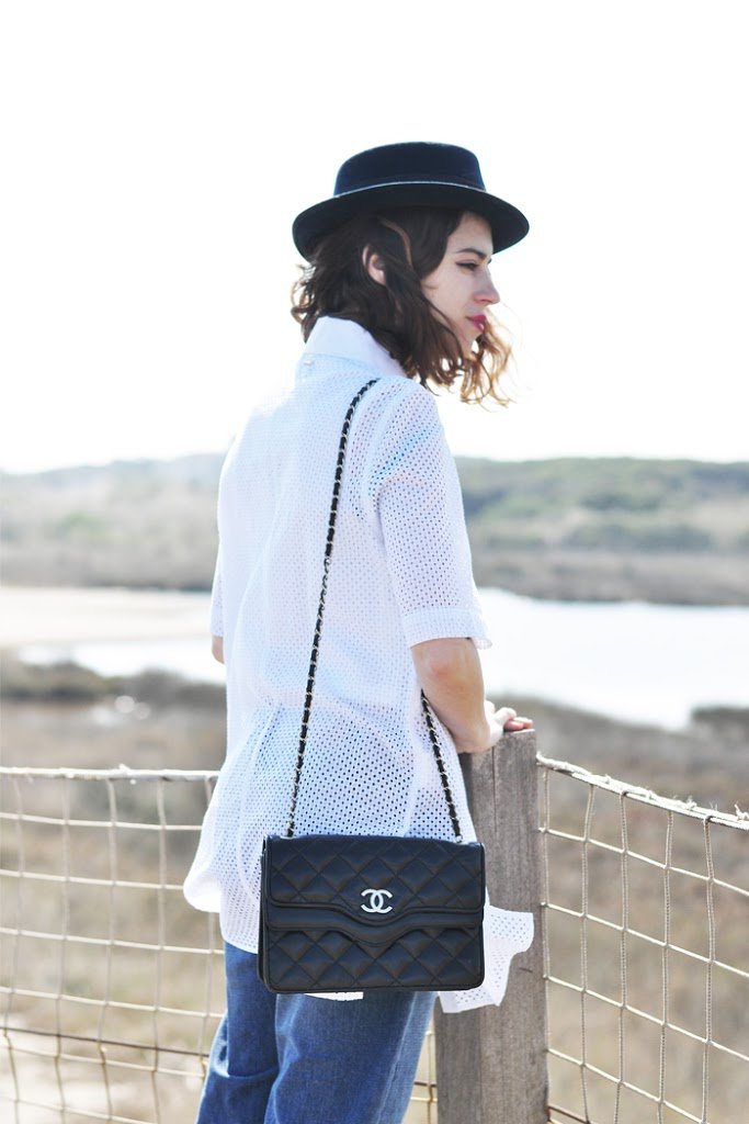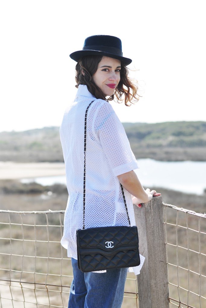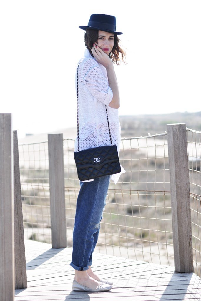 Blouse, Purificación Garcia/ Jeans, Blanco/ Flats, Chanel/ Hat, from NY