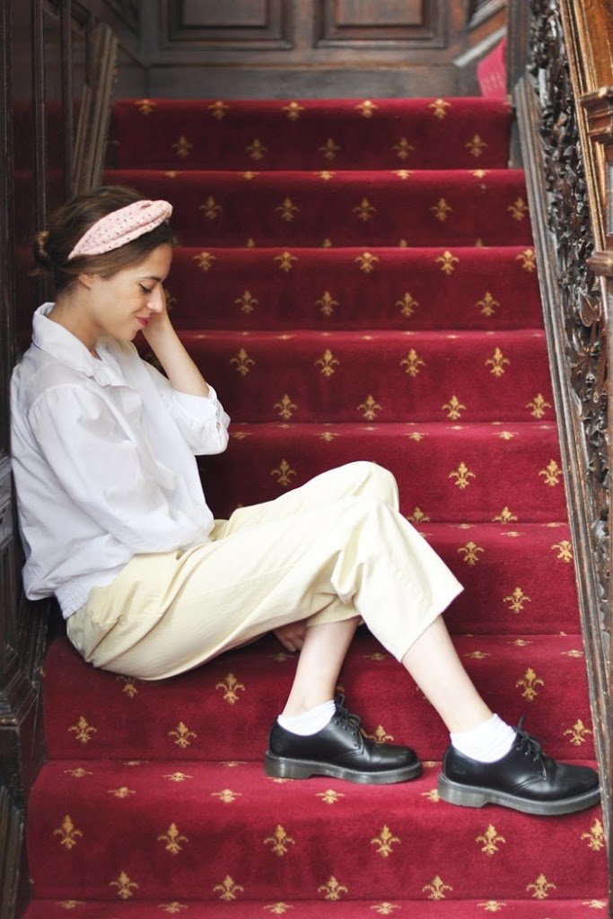 En estas fotos me has recorado un poco a Coco Chanel, con las camisas masculinas y los pantalones, con mucha elegancia y casi sin pretenderlo, perfecto 🙂 Y ahora que lo dices, sí que recuerda un poco a Howarts! Besitos.
