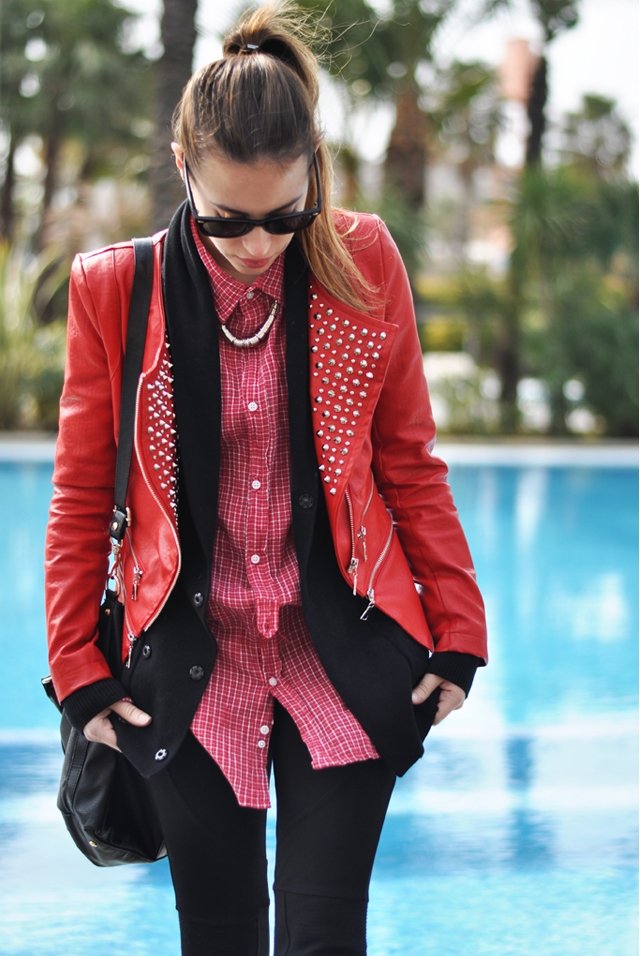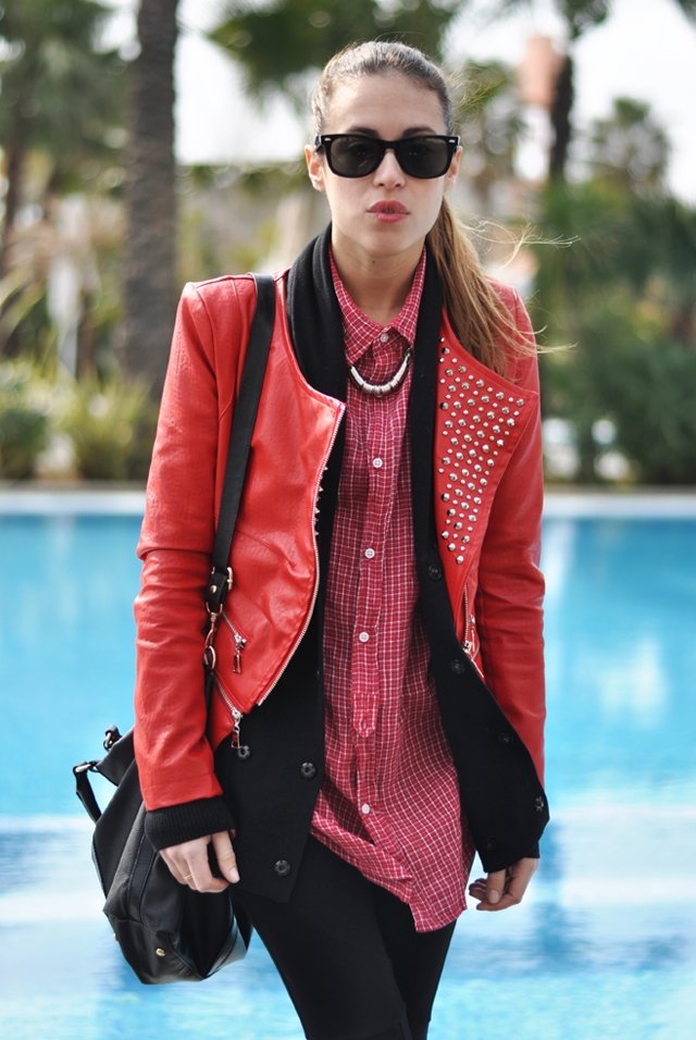 Me encanta la chaqueta roja de tachuelas, es preciosa sin duda una buena elección.
