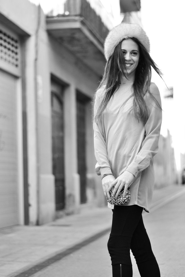 Genial el outfit con el gorro de pelo!