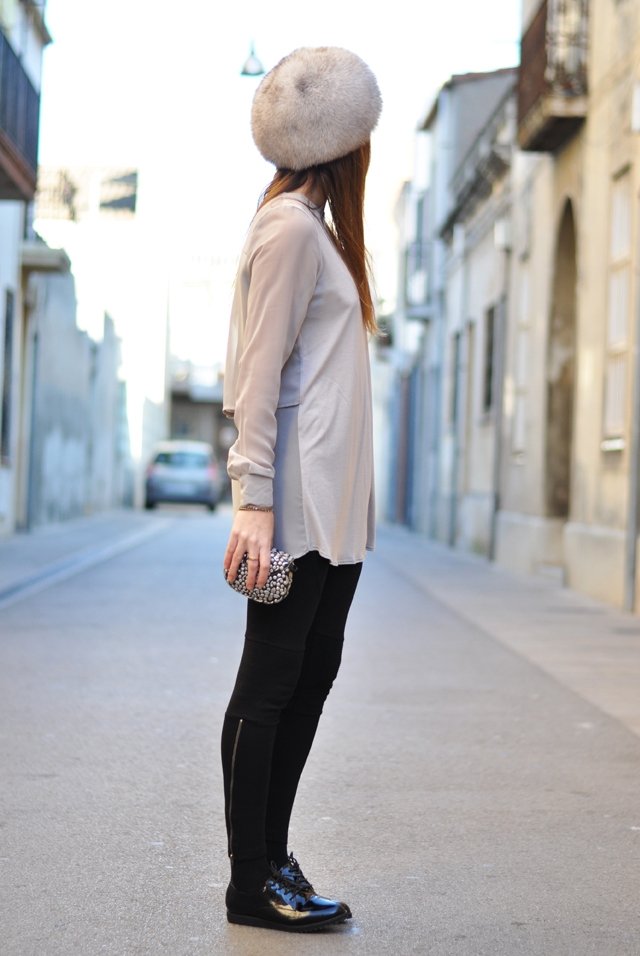 Me encanta el look, es que te queda genial el gorro de pelo, los zapatos también son muy bonitos.