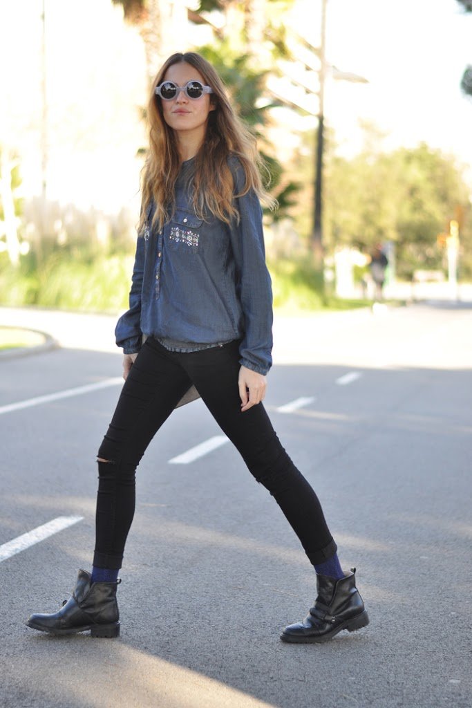 Oh my goodness, this outfit is amazing. The socks are adorable and perfectly combined with the shoes!!!!!Love the denim and the sunnies…everything