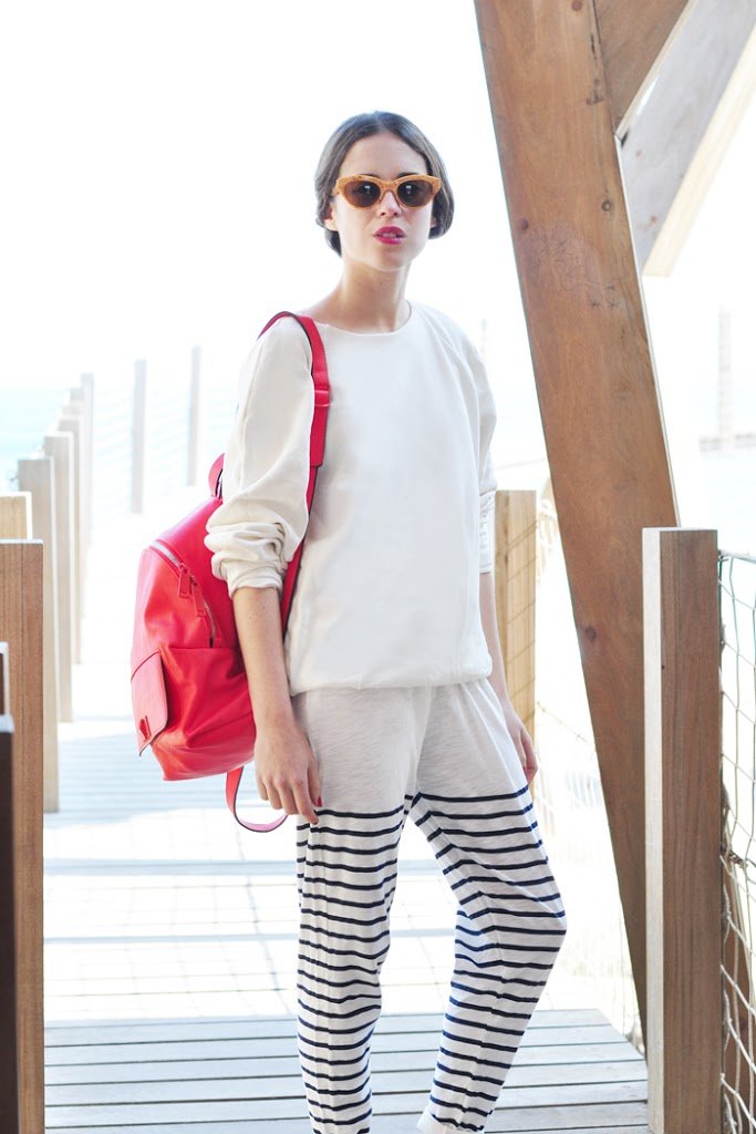 The sea inspires me and the sun is perfect. Another thing that inspires me are the stripes (shirts, pants, sweaters …). Today’s post I show my new pants Mi and Co are so soft and comfortable. The look is very neutral and relaxed, I opted for my new backpack in red from Parfois, and more color for this look. What do you think?