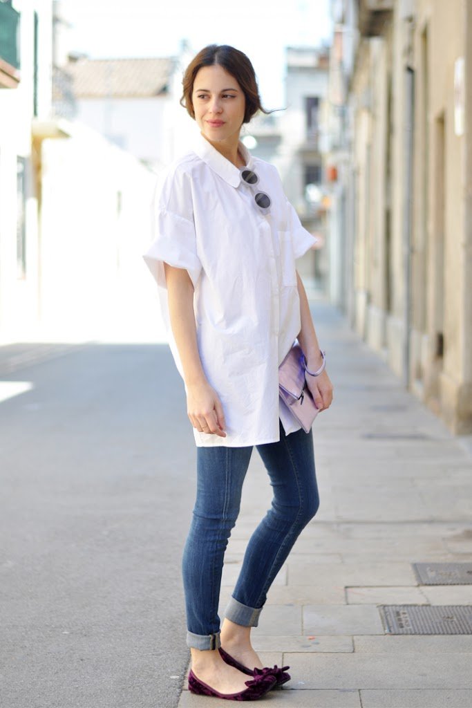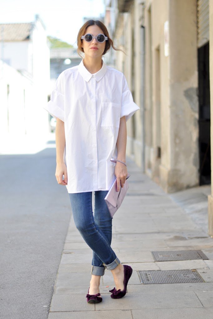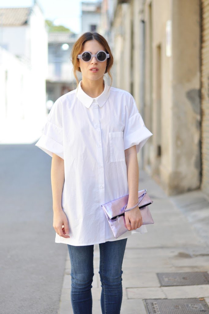 The oversize white shirt looks great on you!