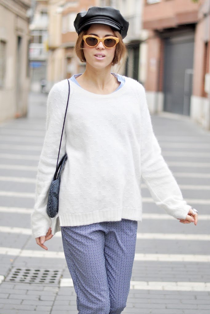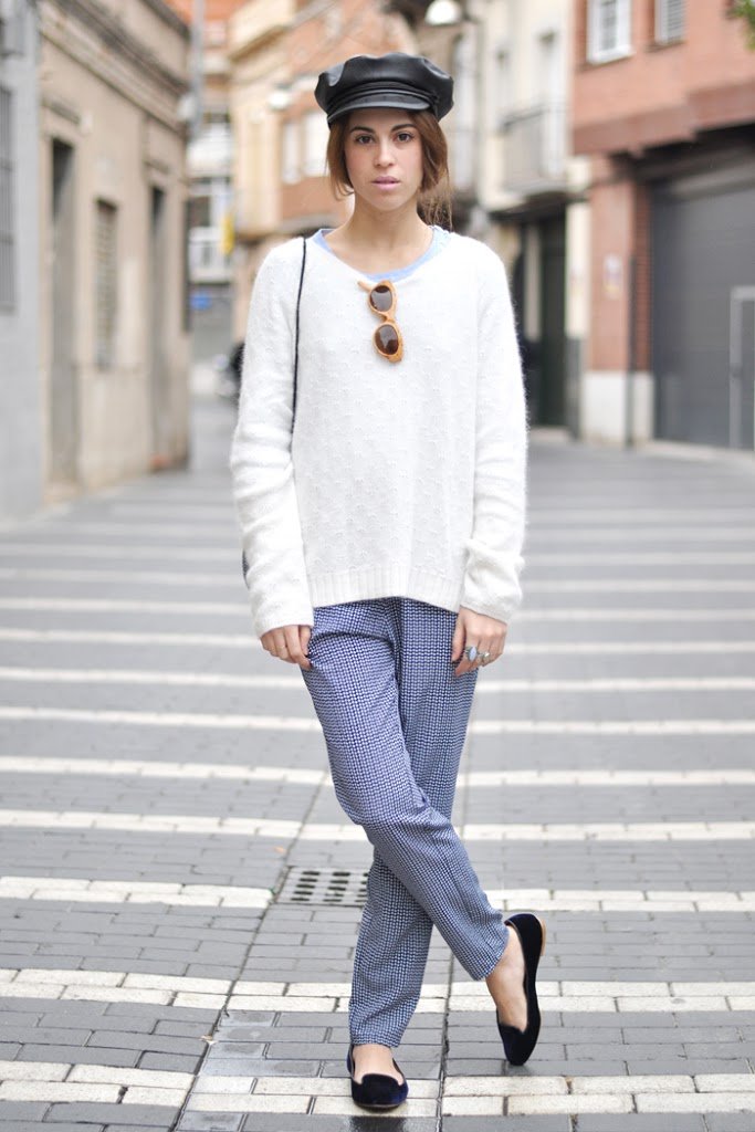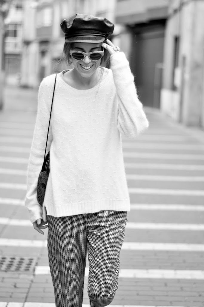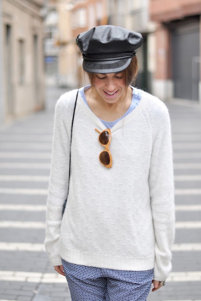 Me encanta el look!! Los pantalones, el jersey, el bolsito, la gorra, las gafas y los zapatos!! 🙂 Me apunto al sorteo a ver si hay suerte! jeje.
