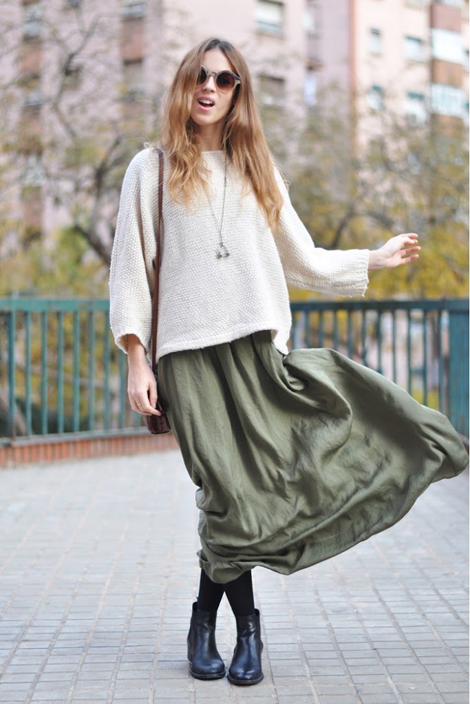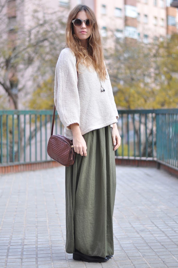 Como me gusta ver looks de falda larga en invierno!!!