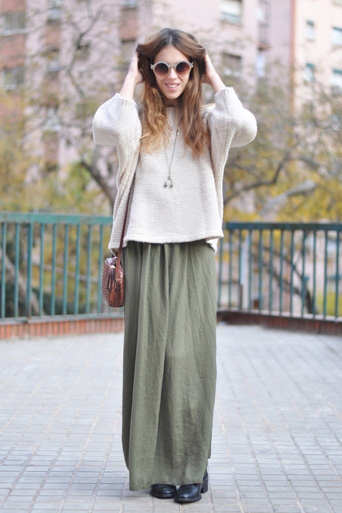 No había tenido ocasión de mostraros esta maxi falda en verde militar (que me encanta), hace bastantes meses que descansa en mi armario y nunca había salido a la luz por aquí. Y por supuestos y prenda indispensable de este invierno, mis botines preferidos de Spartoo.