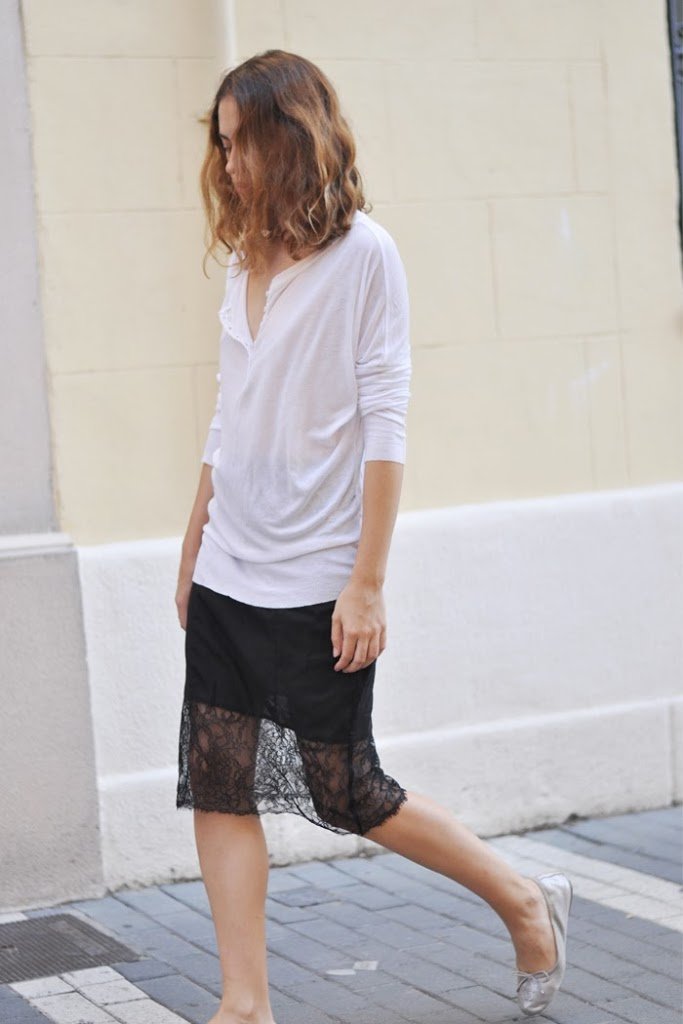 Hace algunas semanas que quería mostraros este look, básico, no tiene mucho, pero quiero destacar mi nueva «falda». Una combinación como decía mi iaia, para llevar debajo de los vestidos y otras faldas. A mi me encantó tal cual, así que decidí plantármela con una camiseta básica blanca, mis nuevas bailarinas de Chanel y lista.