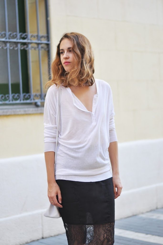 La verdad es que le veo grandes posibilidades y más ahora que el encaje es tendencia, lo veo con unas medias tupidas y un jersey grueso y enorme de lana, con mocasines, unos botines de tacón… ¿Os gusta? ¿Cómo lo combinaríais vosotr@s para este otoño/invierno?