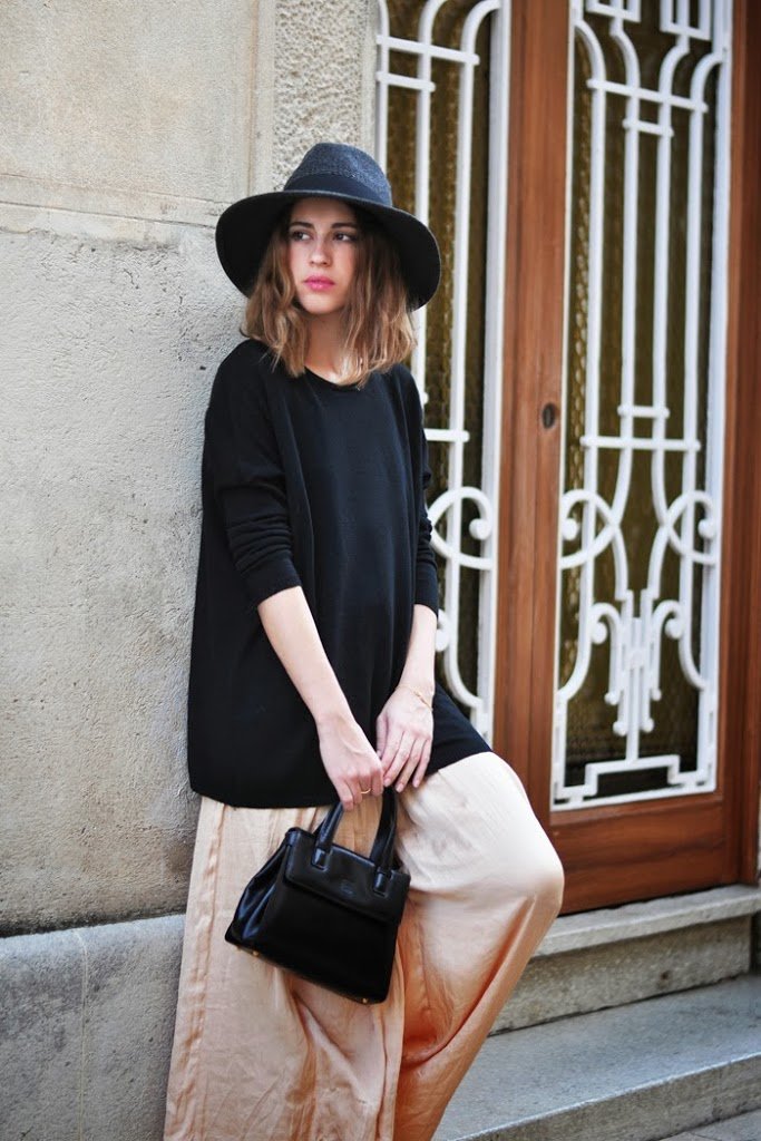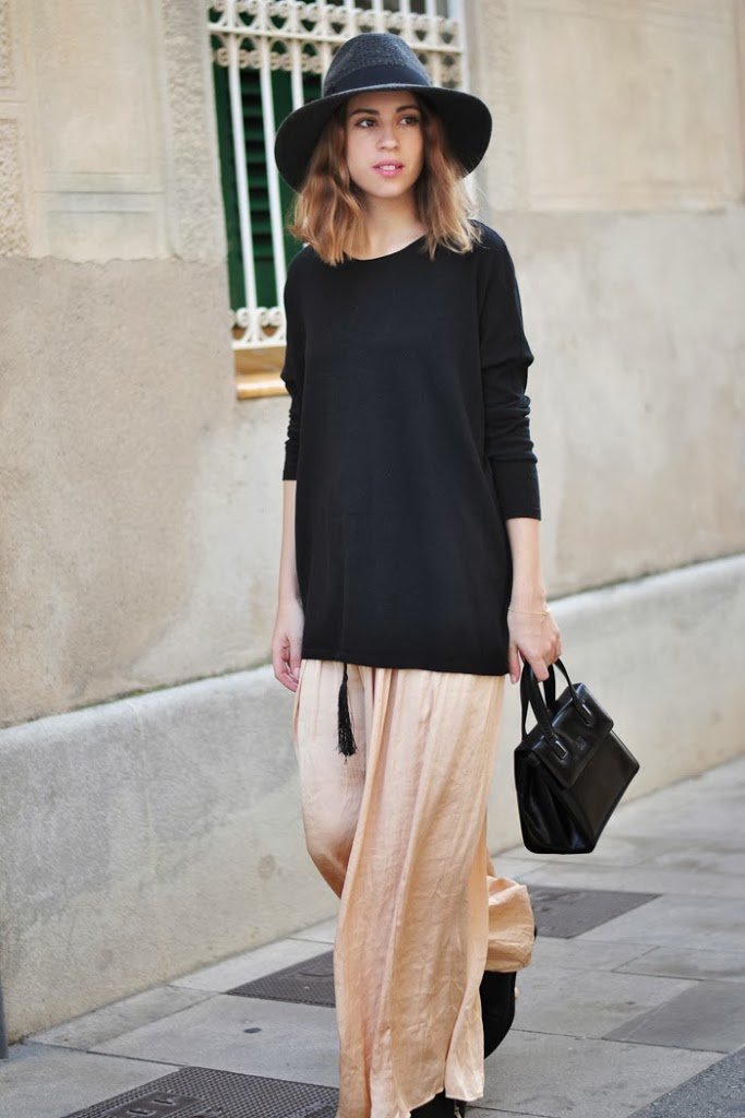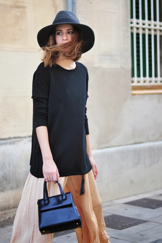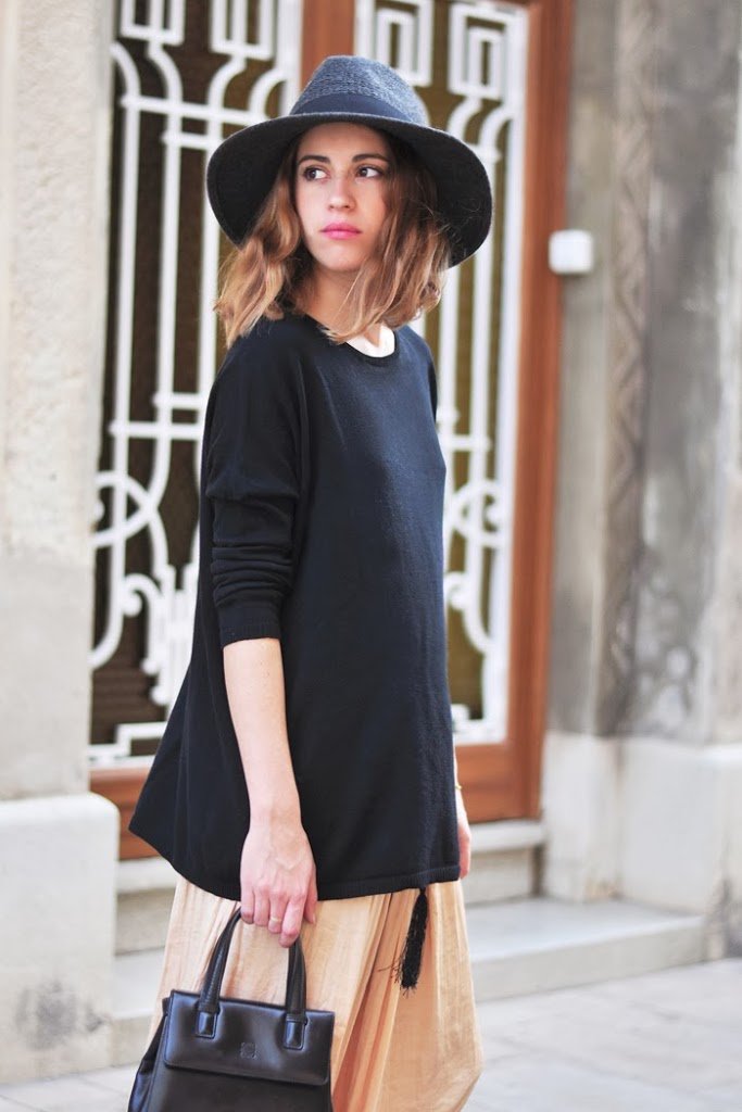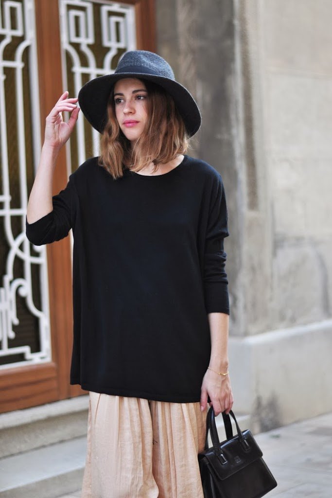 con un jersey fino de punto en color negro, me encanta porque es muy oversize , unos botines y mi sombrero nuevo de Parfois. ¿Qué os parece?
