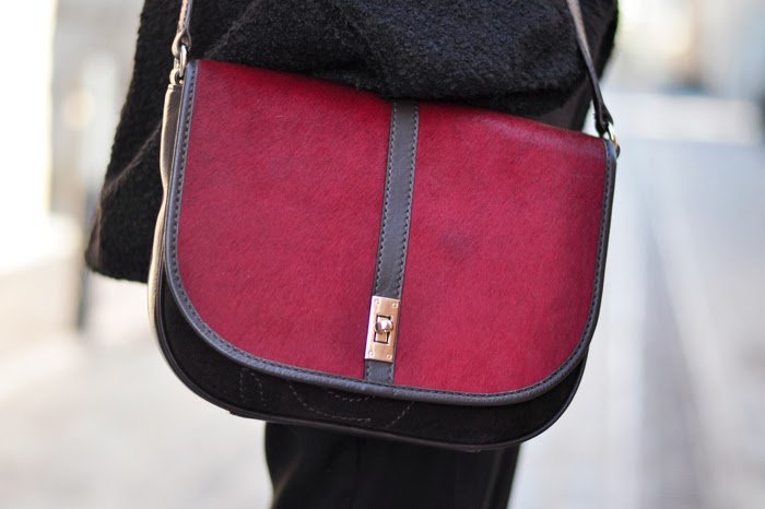 I love this coat is soft inside and out, is very comfortable, I don’t feel trapped! I also like the intense color of my shirt Pepa Loves and a bit of passion in my bag today. What do you think?