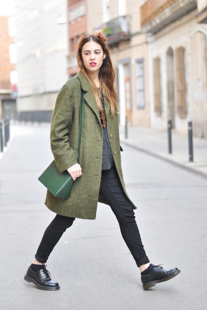 Qué bonito el abrigo!! pero sobre todo, me encanta el bolsito en ese precioso tono de verde!! 🙂