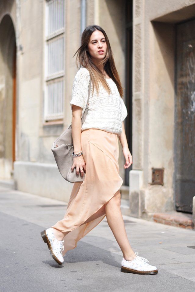 El look de hoy son prendas que ya me habíais visto por aquí, como el vestido en colores pastel de Zara y el top de punto de H&M. He querido romper este look pasteloso con mis nuevos zapatos y dar ese toque diferente…con el que me siento más cómoda.