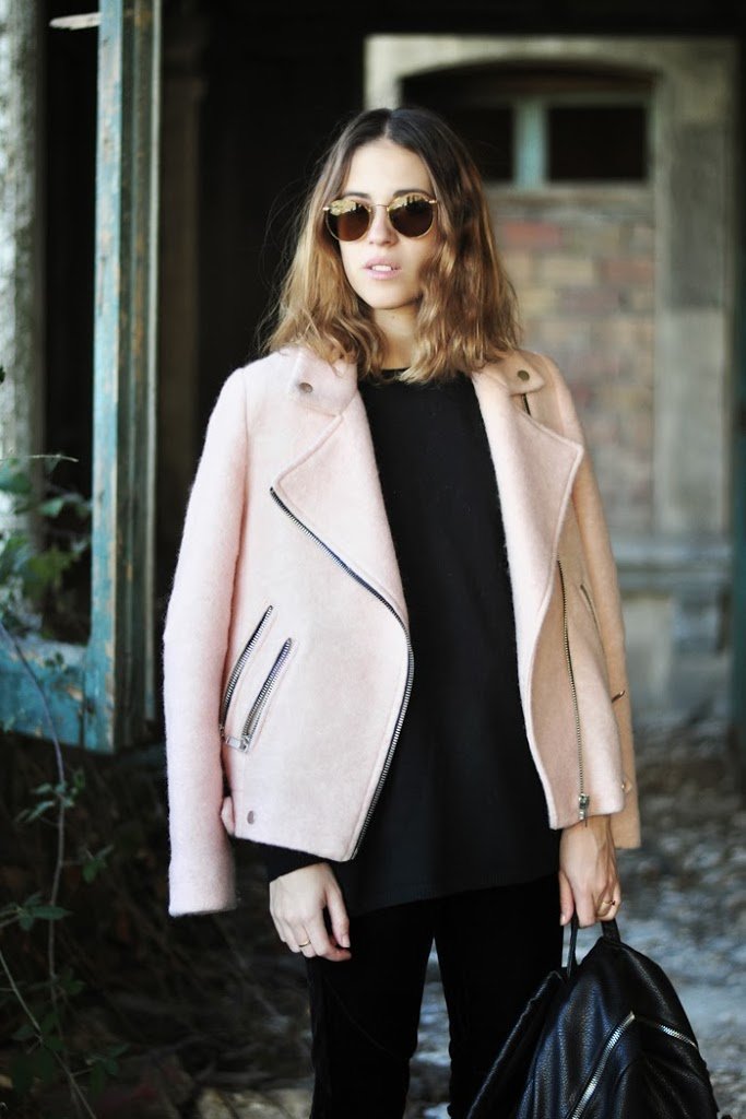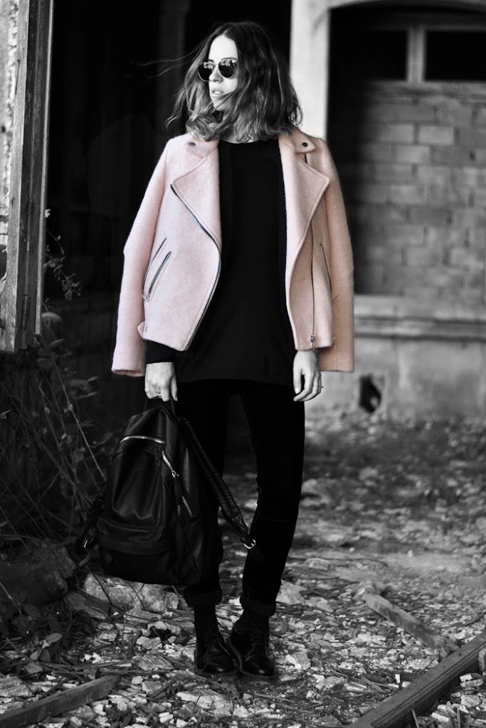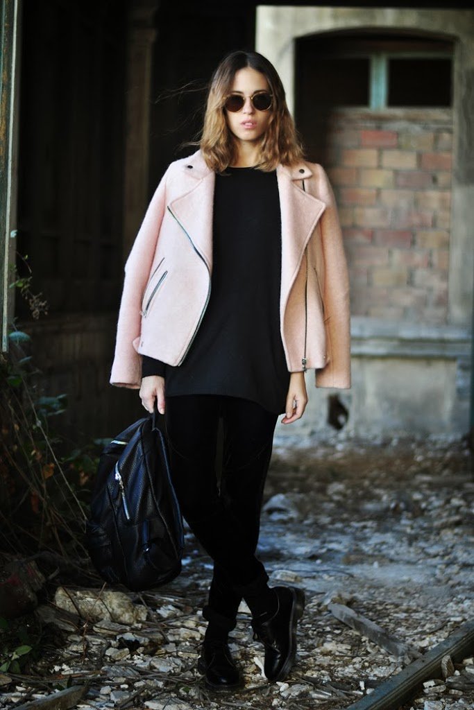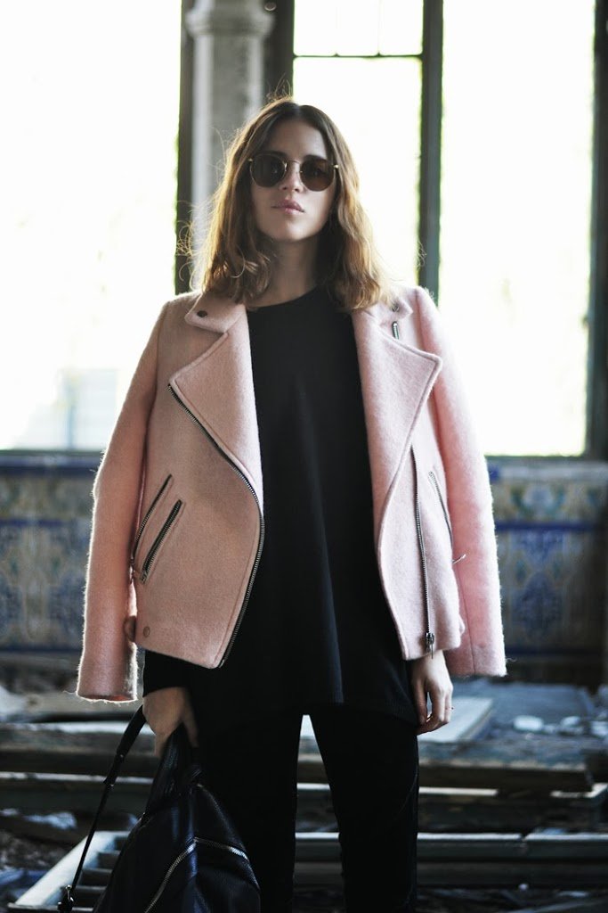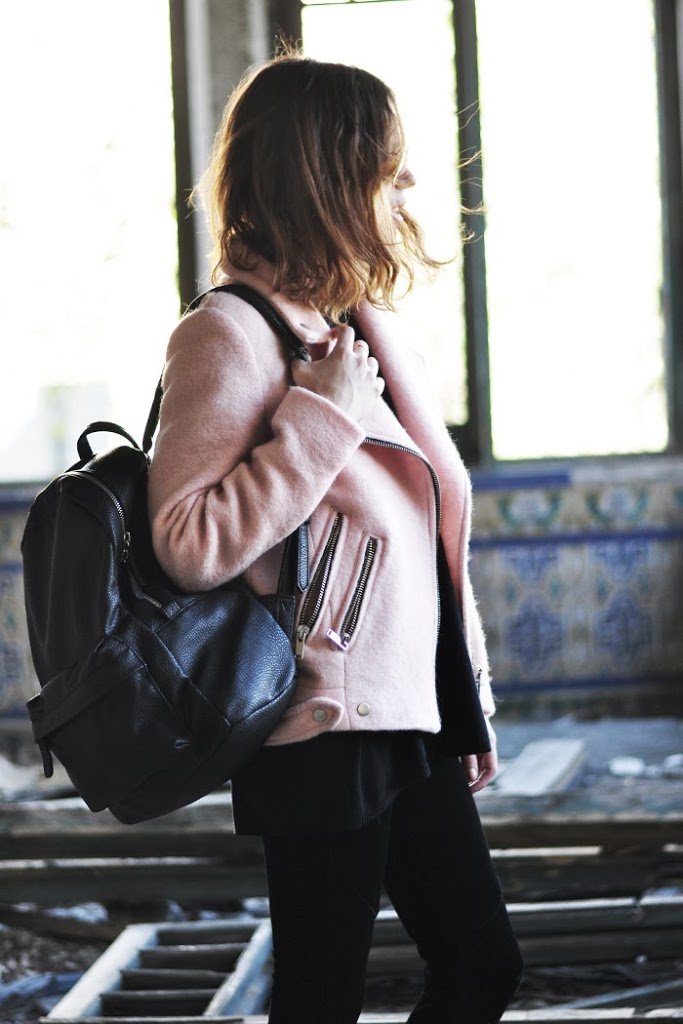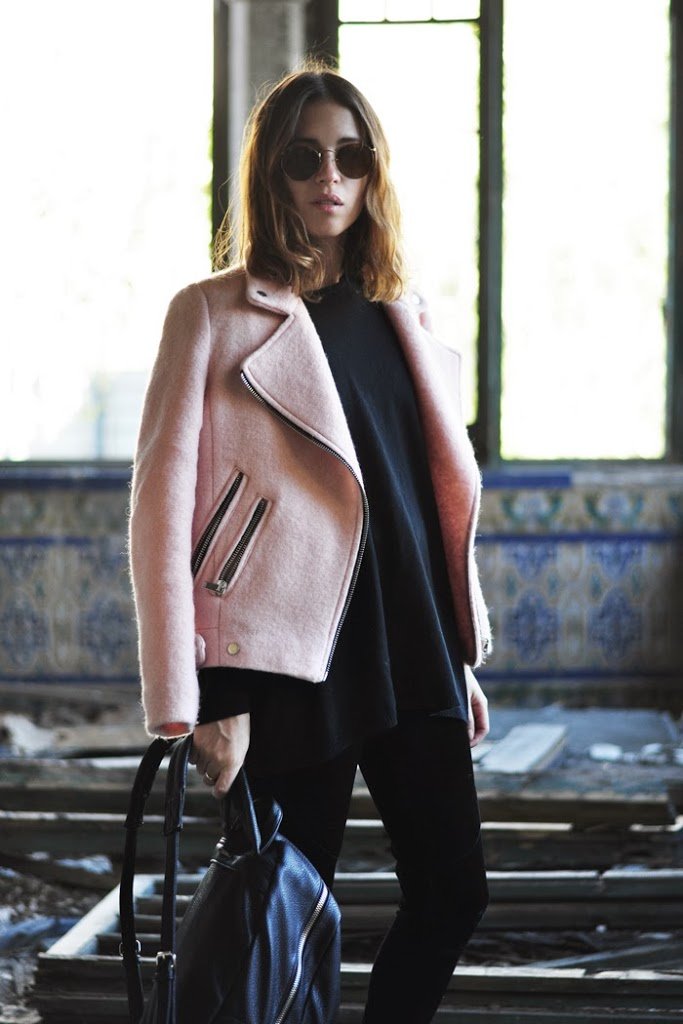 Bueno, en realidad, me encantan tanto el fondo de la sesión como el outfit que nos enseñas. A pesar de ser prendas cómodas y sencillas, me parece un look muy bonito y sobrio. Una base de color negro a la cual la chaqueta le aporta un toque dulce. Es preciosa <3