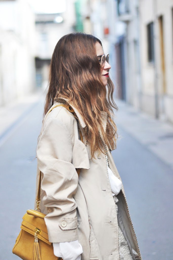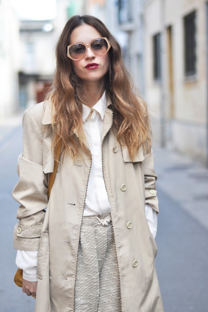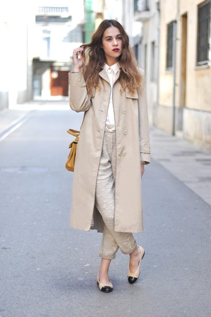 I love to combine items that have the «same» color. And if you are comfortable with this chic, much better. Again a look with my dancers, I will sure many looks with them, a white shirt, casual trousers and my new trench I bought in Paris this last time.