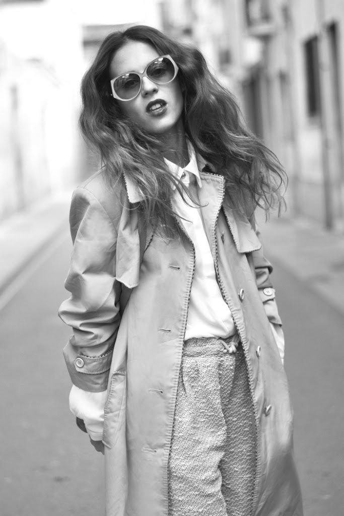 Trench & sunglasses, Vintage/ Pants, Oysho/ Bag, Aldo/ Flats, Chanel