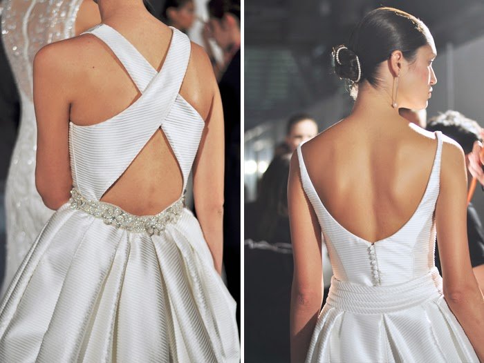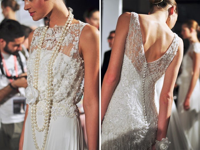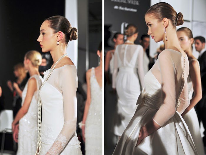 La diseñadora presentó una delicada colección repleta de encajes, bordados y pedrería de inspiración neoyorquina. Esta colección está inspirada en las de estrellas de cine que brillaron con luz propia como Grace Kelly o Audrey Hepburn. Aunque mi vestido de novia no tiene nada que ver con este estilo, las modelos estaban bellísimas y pude coger alguna que otra idea para mi «bodita», sobretodo con los modelos más «vintage» y algo más bohemios. Lo que más me gustó de toda la colección, fueron sus espaldas (se nota por las fotografías), maravillosas formas en todos los tejidos. ¿Qué os parece la nueva colección?