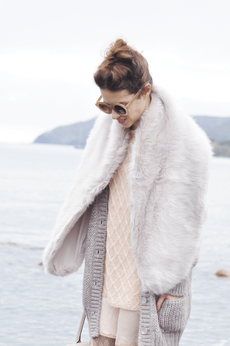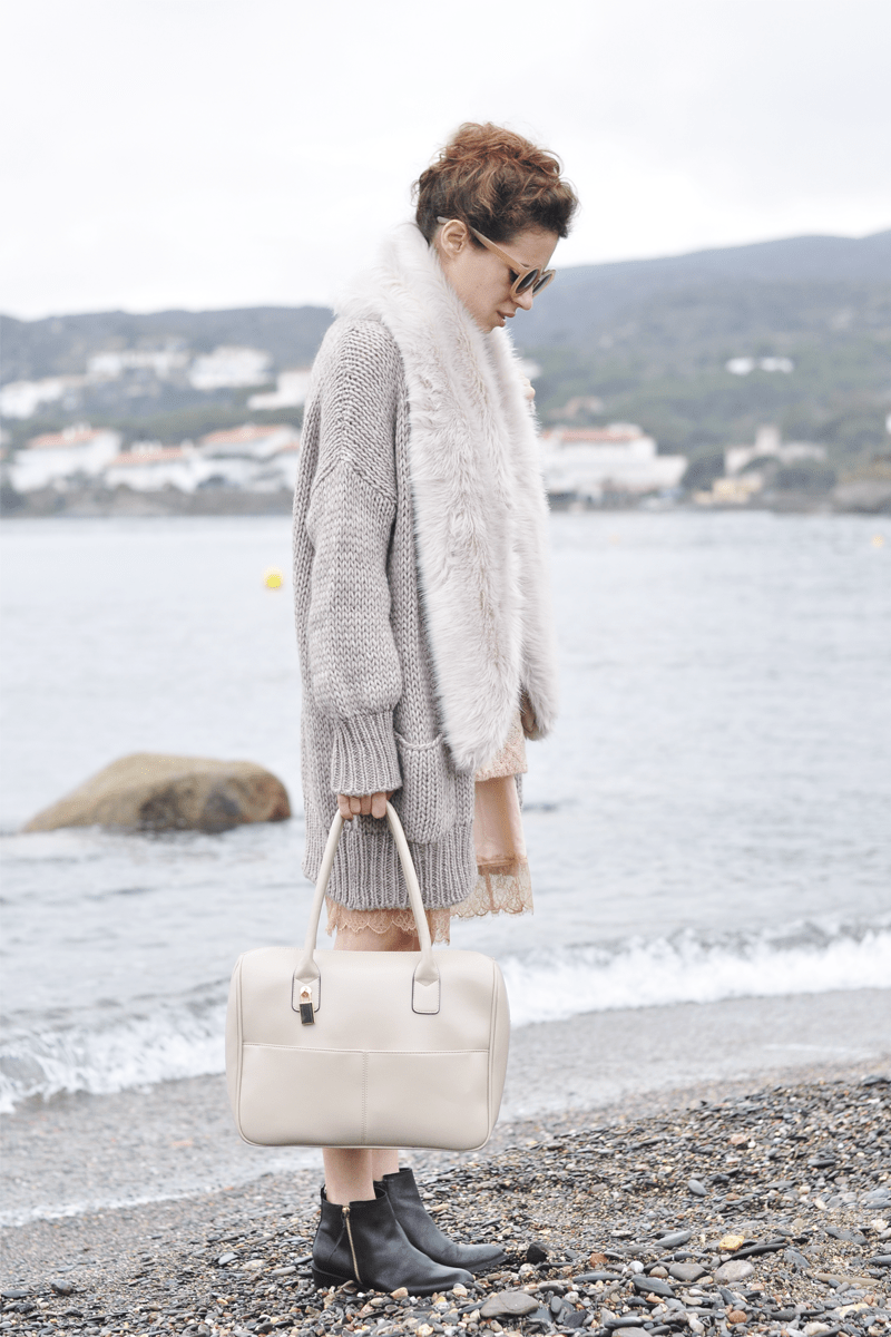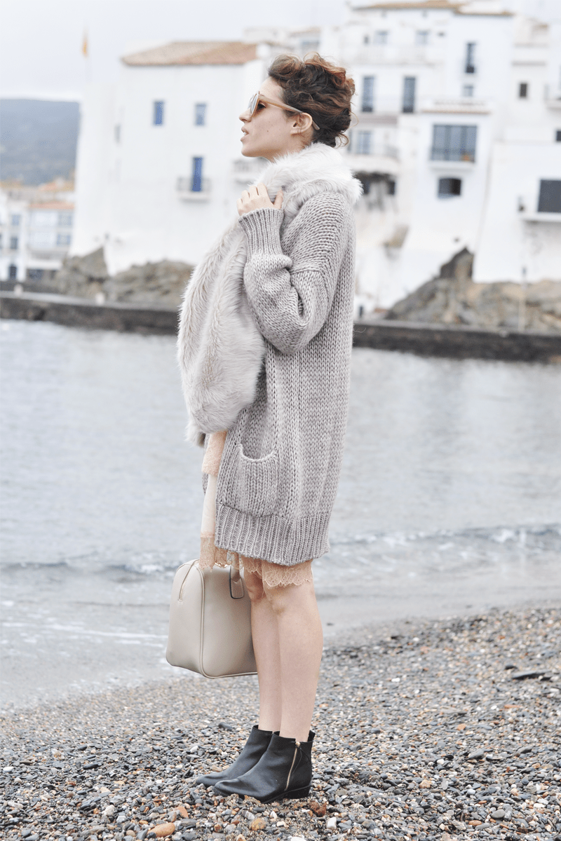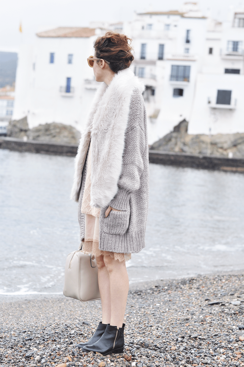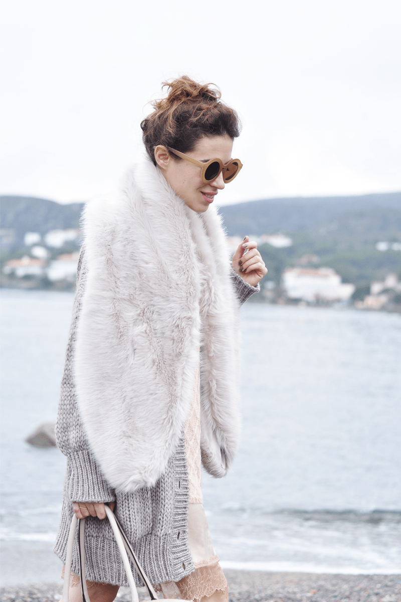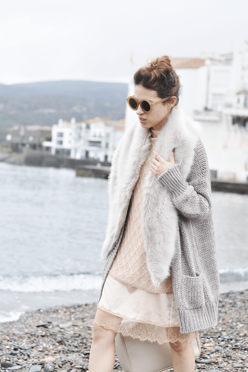 Mientras escogía mis prendas, pensé en mezclar diferentes texturas con tonos similares. Un poco de tricot, un poco de pelo (sintético) y algo de raso. Con ellas, quise crear un look romántico y un poco bohemio, idóneo para una de las villas más artísticas de Catalunya. Bueno, idóneo para la playa se bien que no es, pero si es perfecto para descubrir la ciudad de Cadaqués ¿No creéis? Aunque realmente da igual que llevase en ese momento, el lugar era tan fantástico que te olvidabas de la humedad y esos ricitos que tímidamente salían de las horquillas. Espero que os guste el look de hoy, mil gracias por pasaros por aquí. ¡Feliz día!