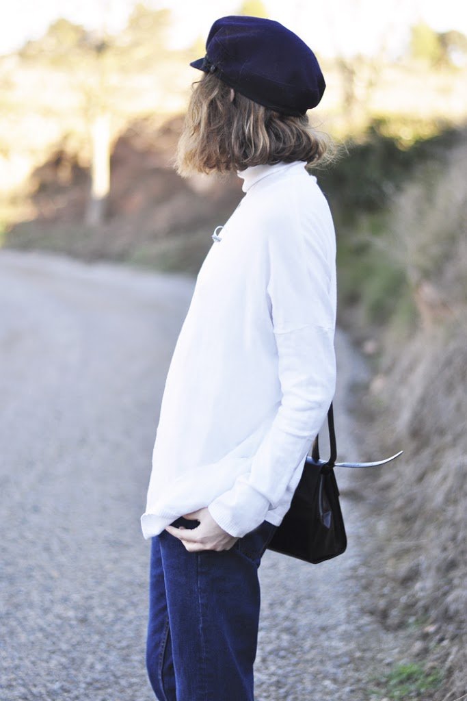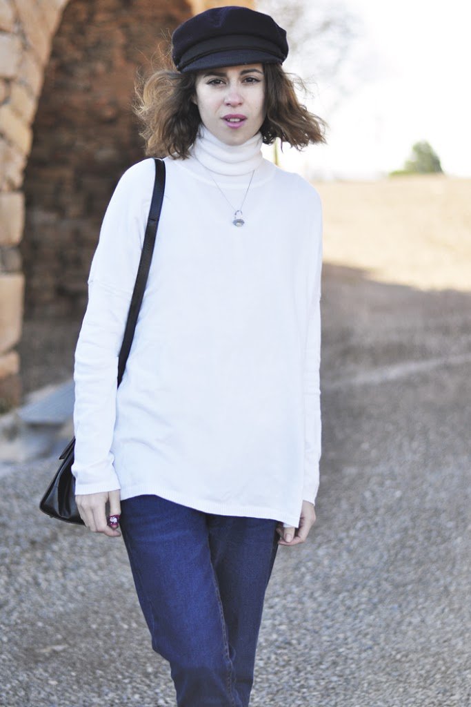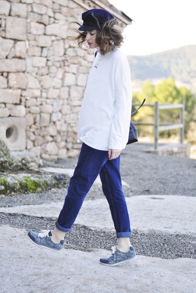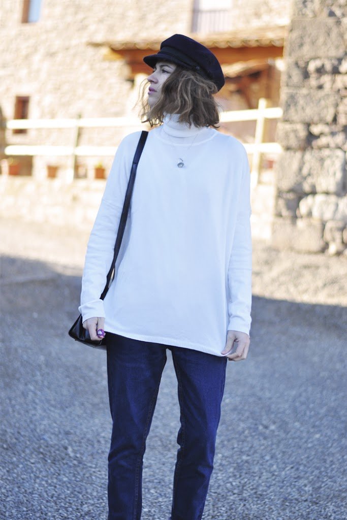 This weekend has been wonderful. Family, away from the city, off … only doing what I wanted, when I wanted. This look is not very especial, boyfriend jeans, a white sweater, Sneakers from Bershka and my favorite hat. I don’t need many items for this weekend. What do you think?