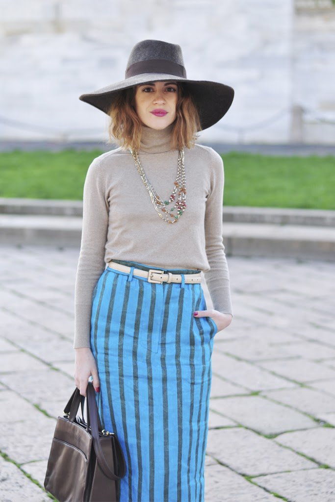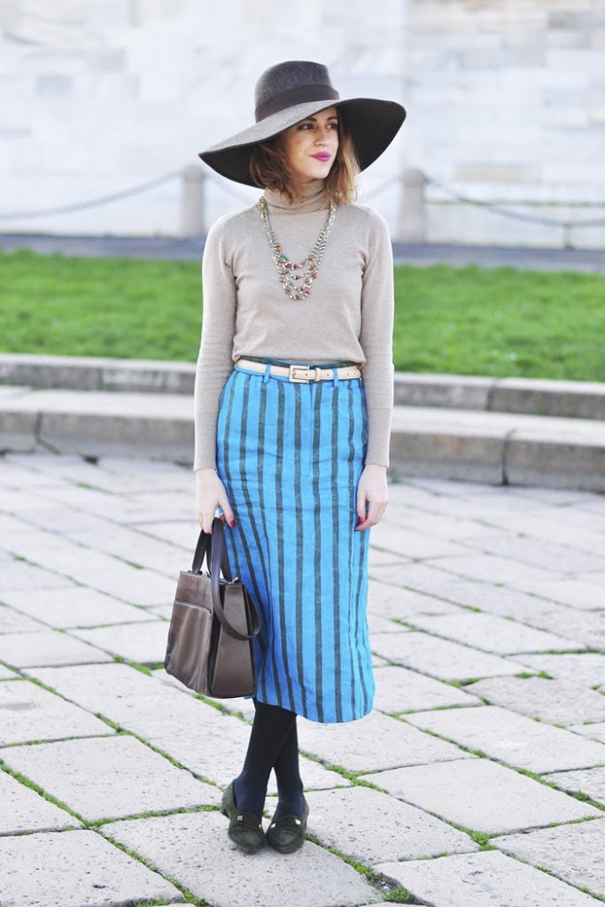 Skirt, Georgio Armani (vintage)/ Bag, Loewe (vintage)/ Sweater and Coat, Zara/ Hat, Uterqüe