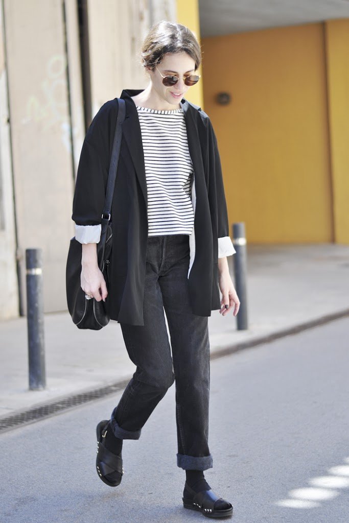 Me encantan los look total black, y si combian con rayas mejor que mejor!