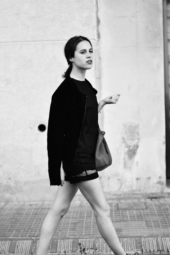 Los shorts, el top y la chaqueta con flecos son increíbles!
