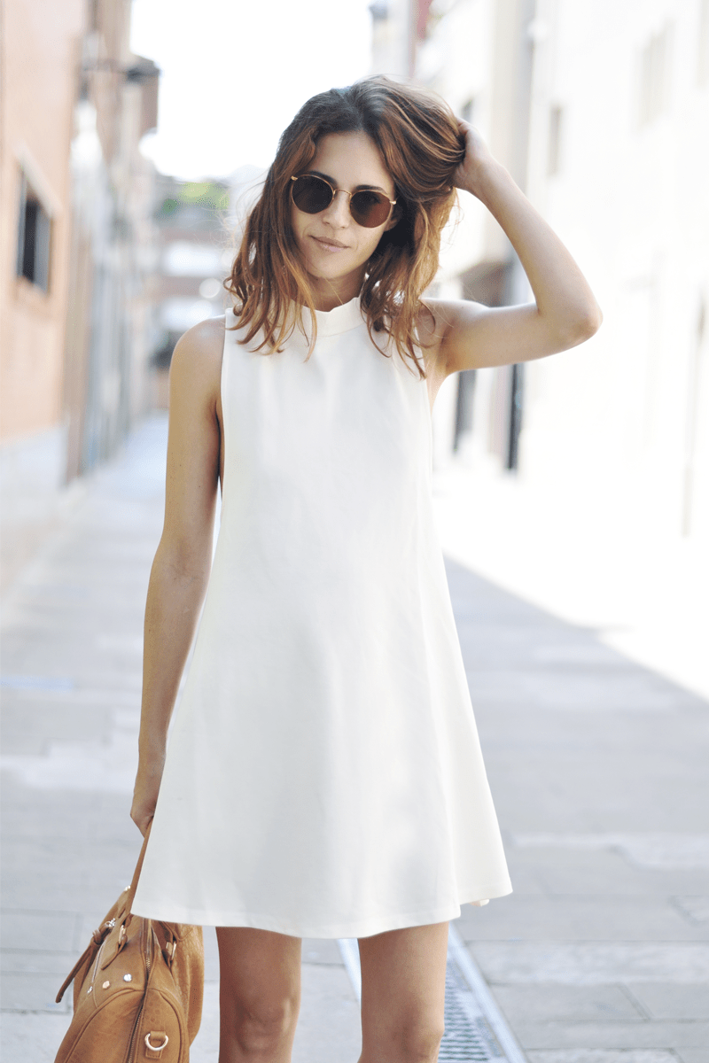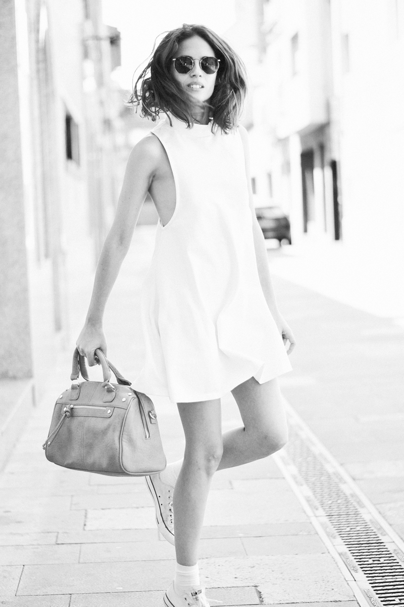 Hace algún tiempo que tenía ganas de un vestido de este tipo. Sencillo, minimalista y en color blanco. El único “inconveniente” es que es bastante holgado en la zona de las mangas y entonces no es posible ponérmelo según donde vaya. Lo mejor de este tipo de vestido es que tiene tanta simplicidad que puedes combinarlo de muchas formas y con muchos y diferentes accesorios. Con zapatillas, sandalias, bailarinas… se puede dar un toque más sport (como es el caso), más arreglado o quizás algo bohemio con un sombrero, una mochilita… a pesar de la desventaja que os decía, las posibilidades son muchas, ¿no creéis? Espero que os guste el look de hoy. ¡Recordad el sorteo!